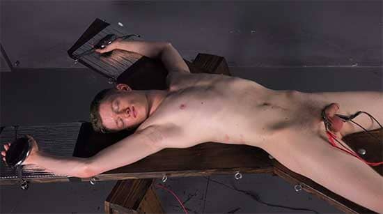 Le bourreau, penché au-dessus de lui, observait chaque réaction avec fascination. Il posait parfois la main sur le torse de Jules, juste entre deux électrodes, sentant son cœur battre, rapide, vibrant comme une corde tendue. Puis il effleurait du bout des doigts les zones autour du pénis et des testicules, là où la peau était encore chaude du passage du courant. Et à chaque contact, Jules tremblait un peu plus.